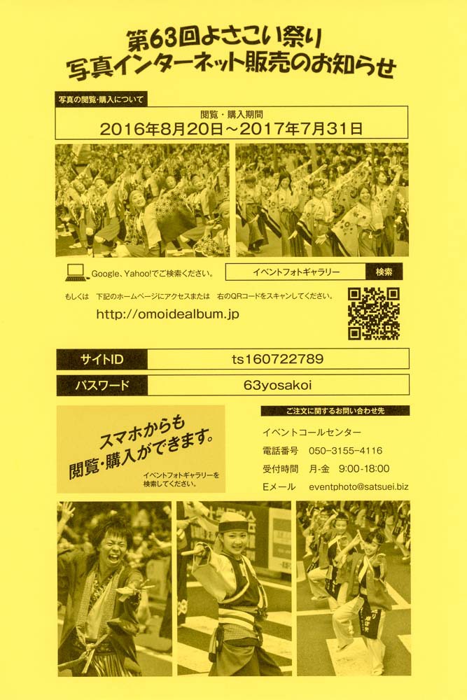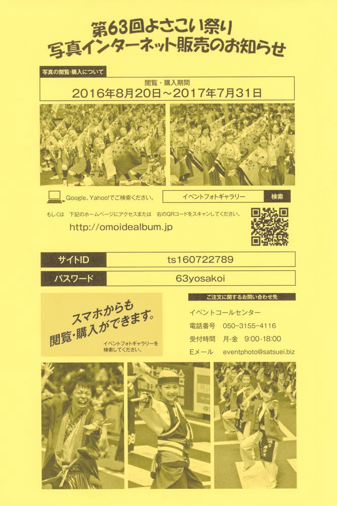 第64回よさこい祭り写真販売のお知らせ