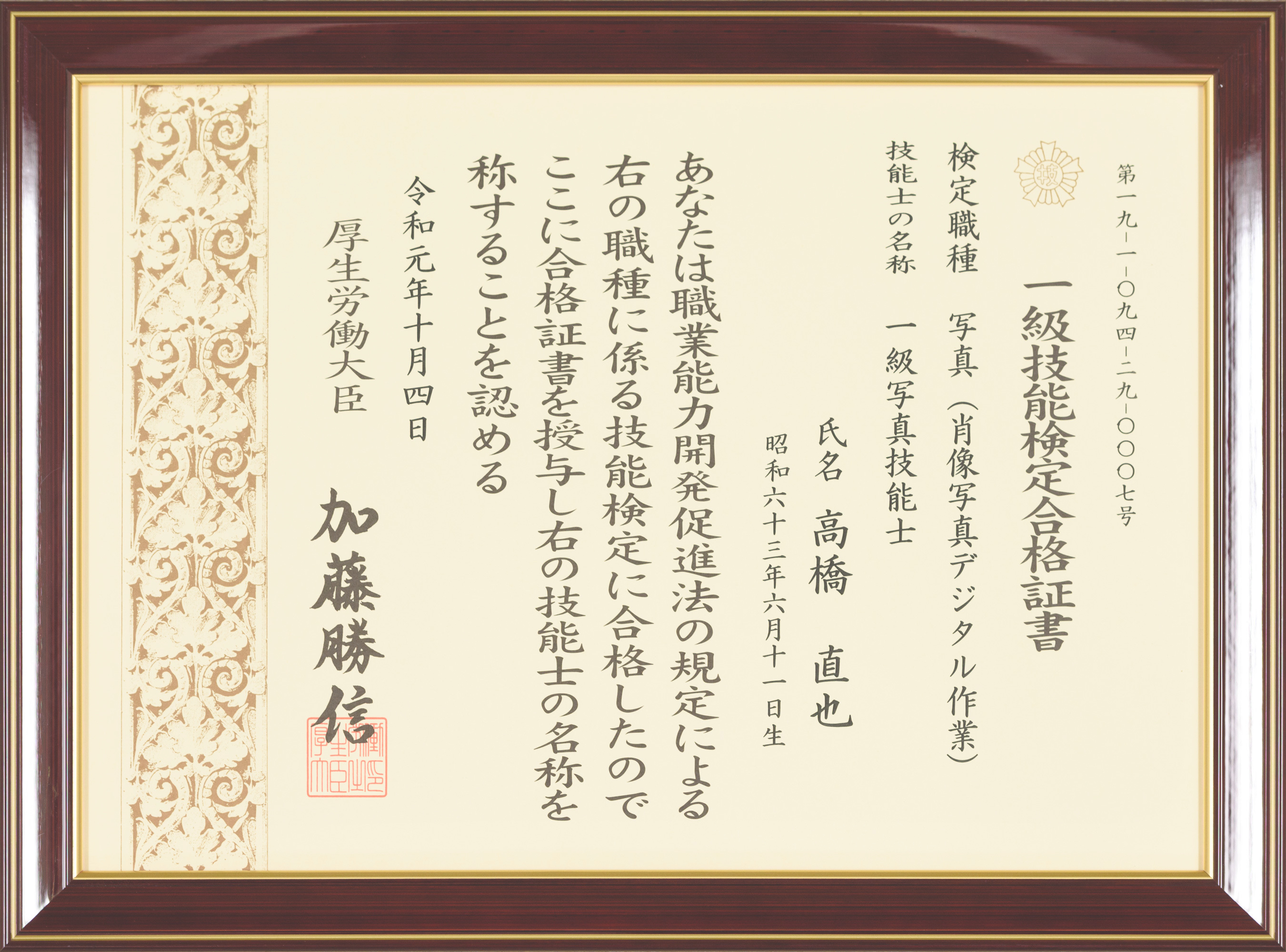 国家資格 一級写真技能士に合格