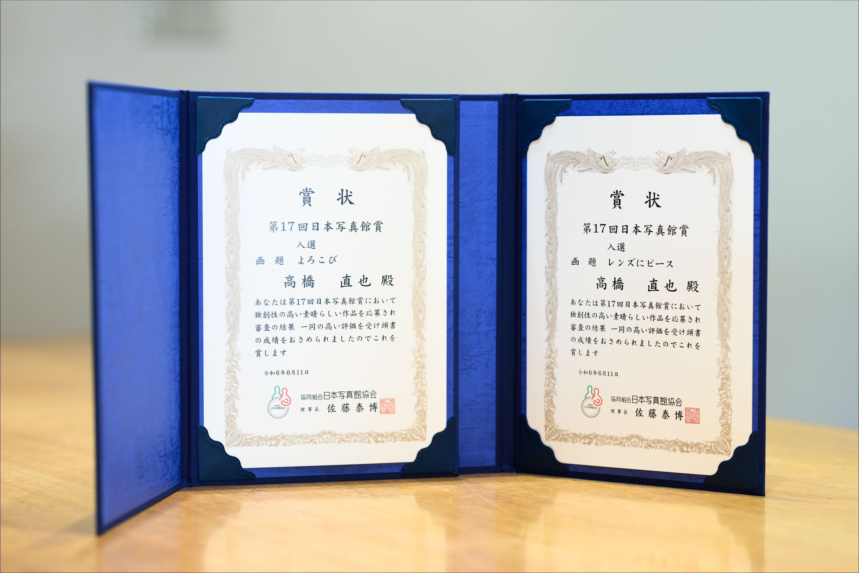 第17回日本写真館賞 2部門で入選いたしました